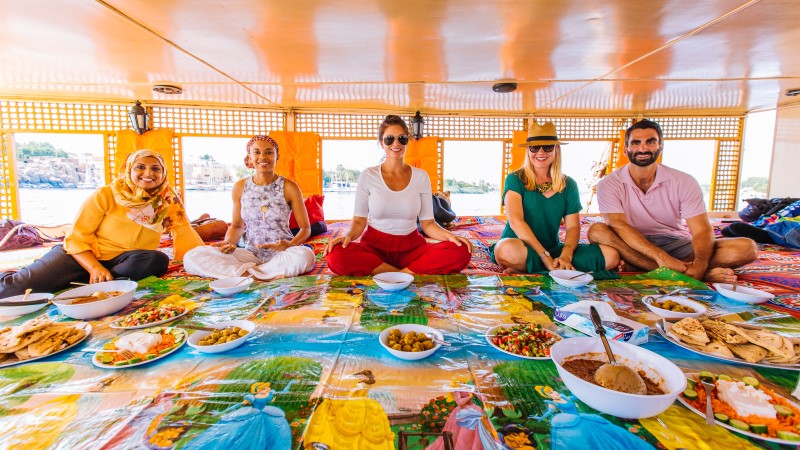 Your Nubian sailing crew, which tends to be made up of two sailors and a chef, will cook all the deliciously hearty meals you’ll tuck into on your trip. Get ready to gorge yourself on local delicacies like foul (an Egyptian fava bean stew), falafel, hummus, pitta bread and more.