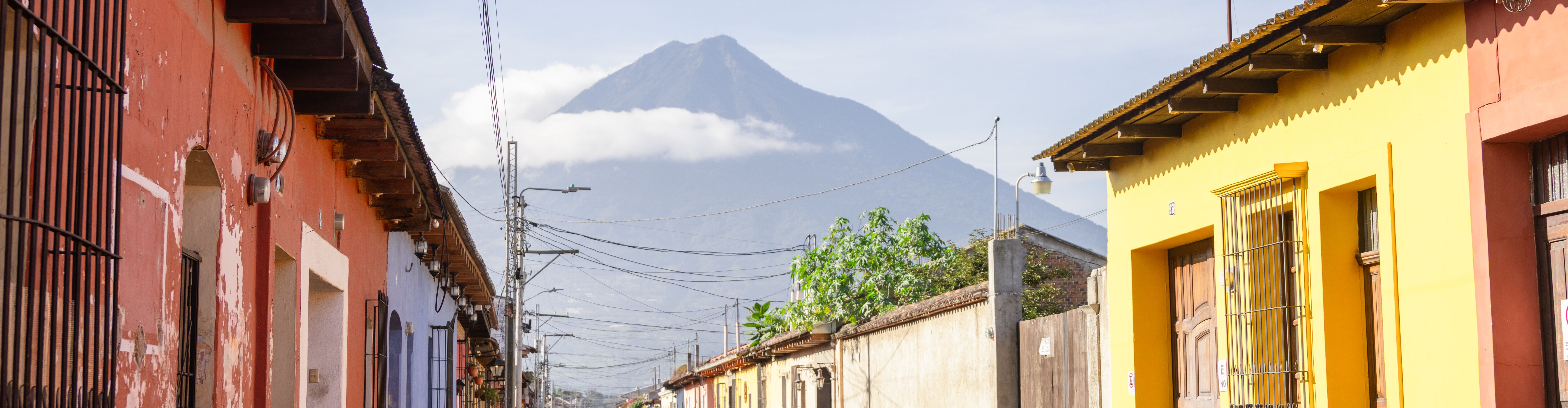 A volcano towers over the colourful streets of Antigua, Guatemala