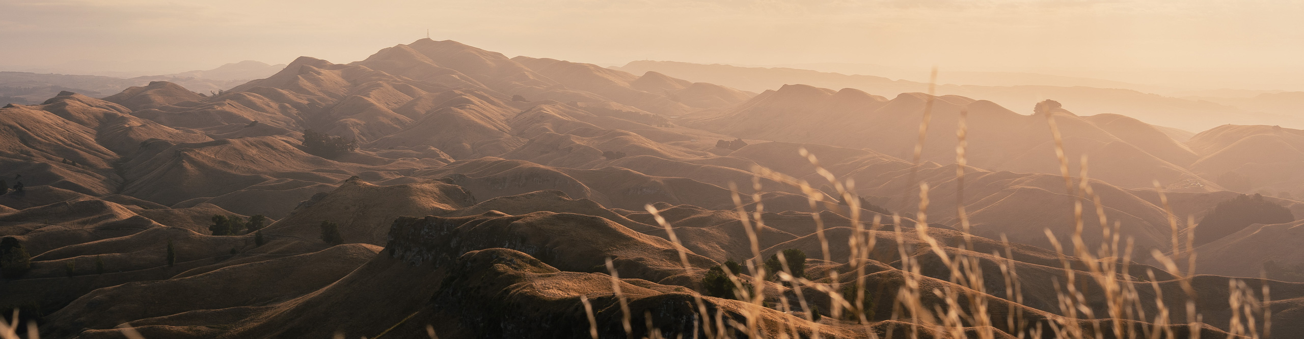 Golden sunset over the hills at Te Mata Park, Hawkes Bay, North Island New Zealand